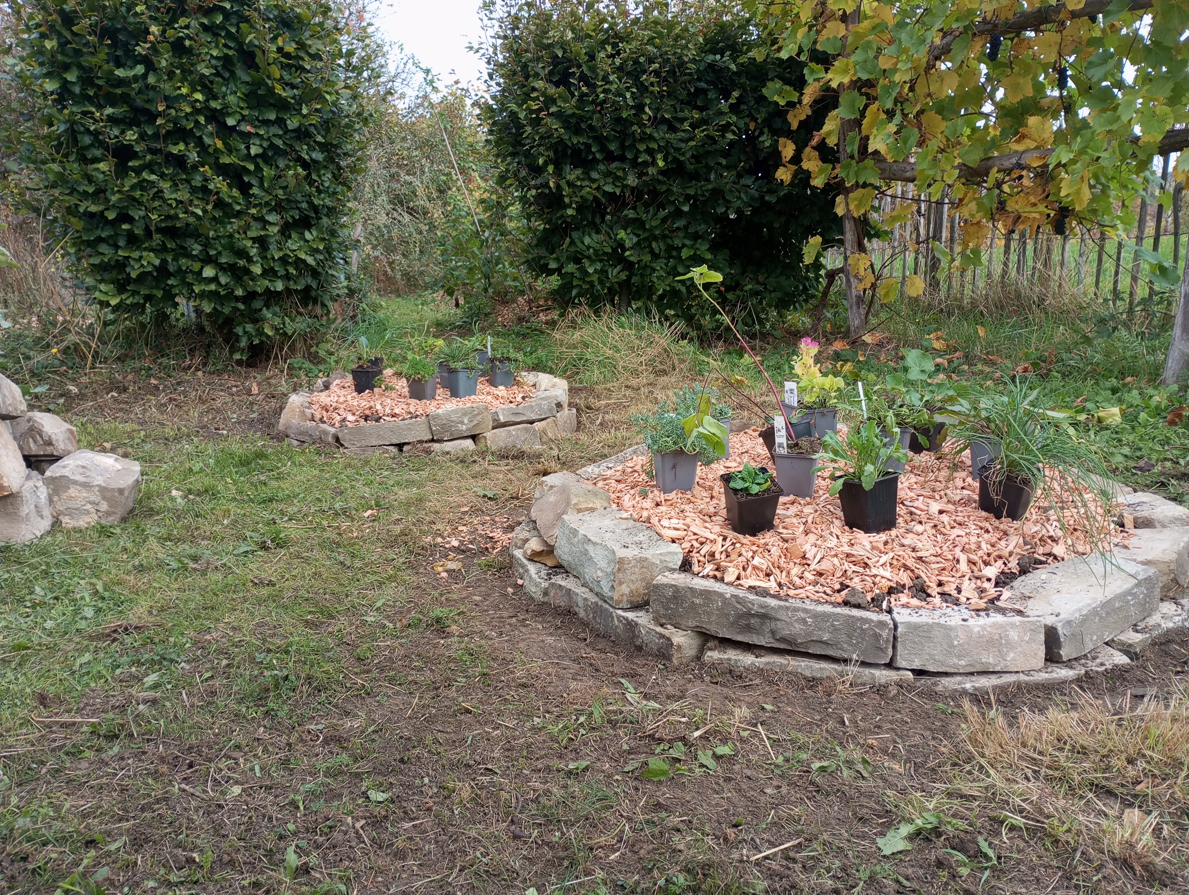 Tout cela dans la recherche de l'harmonie, en travaillant avec des espèces utiles pour la biodiversité, la cuisine ou les mains de l'artisan et en favorisant un maximum les matériaux naturels ou de récupération.