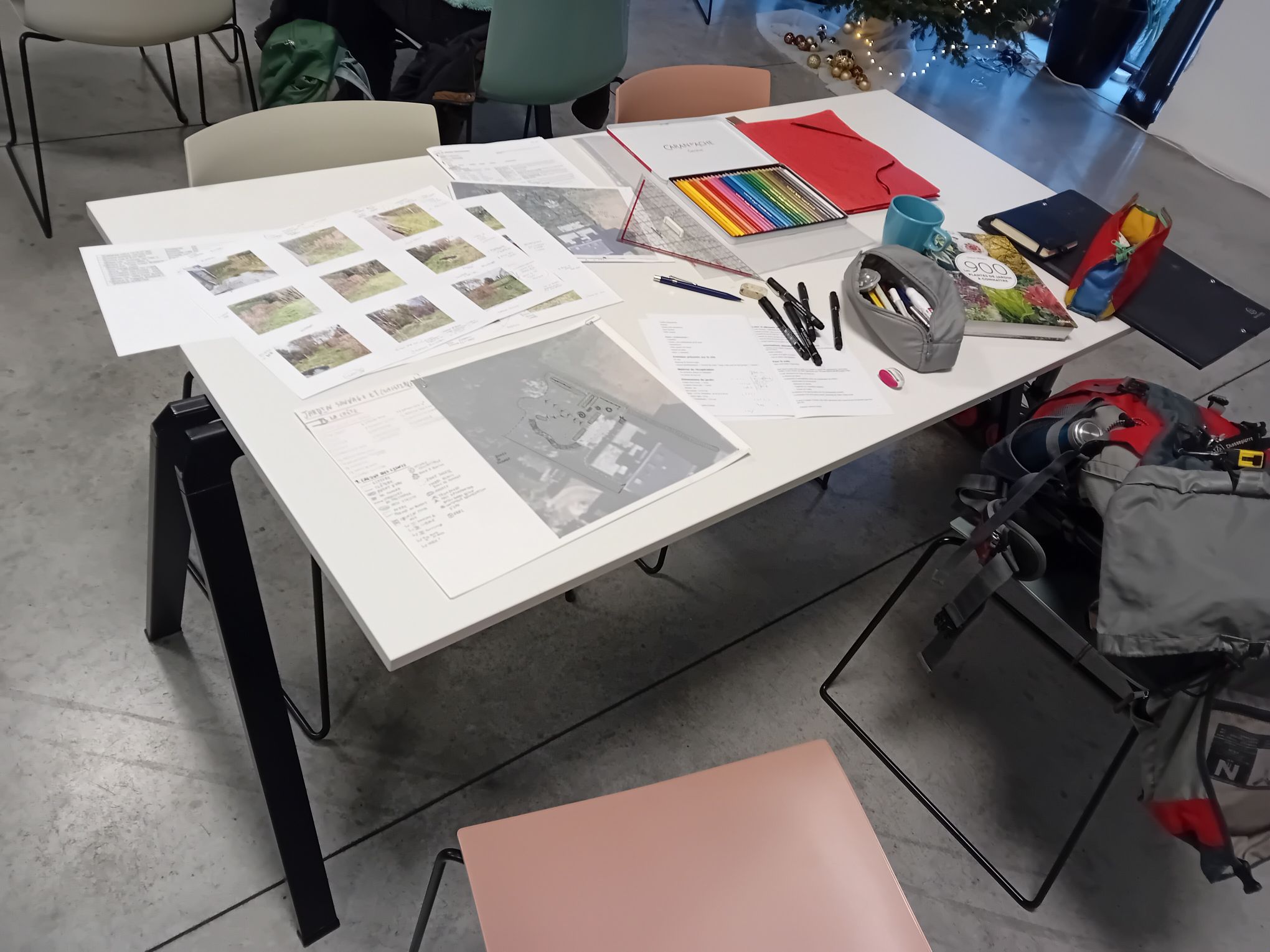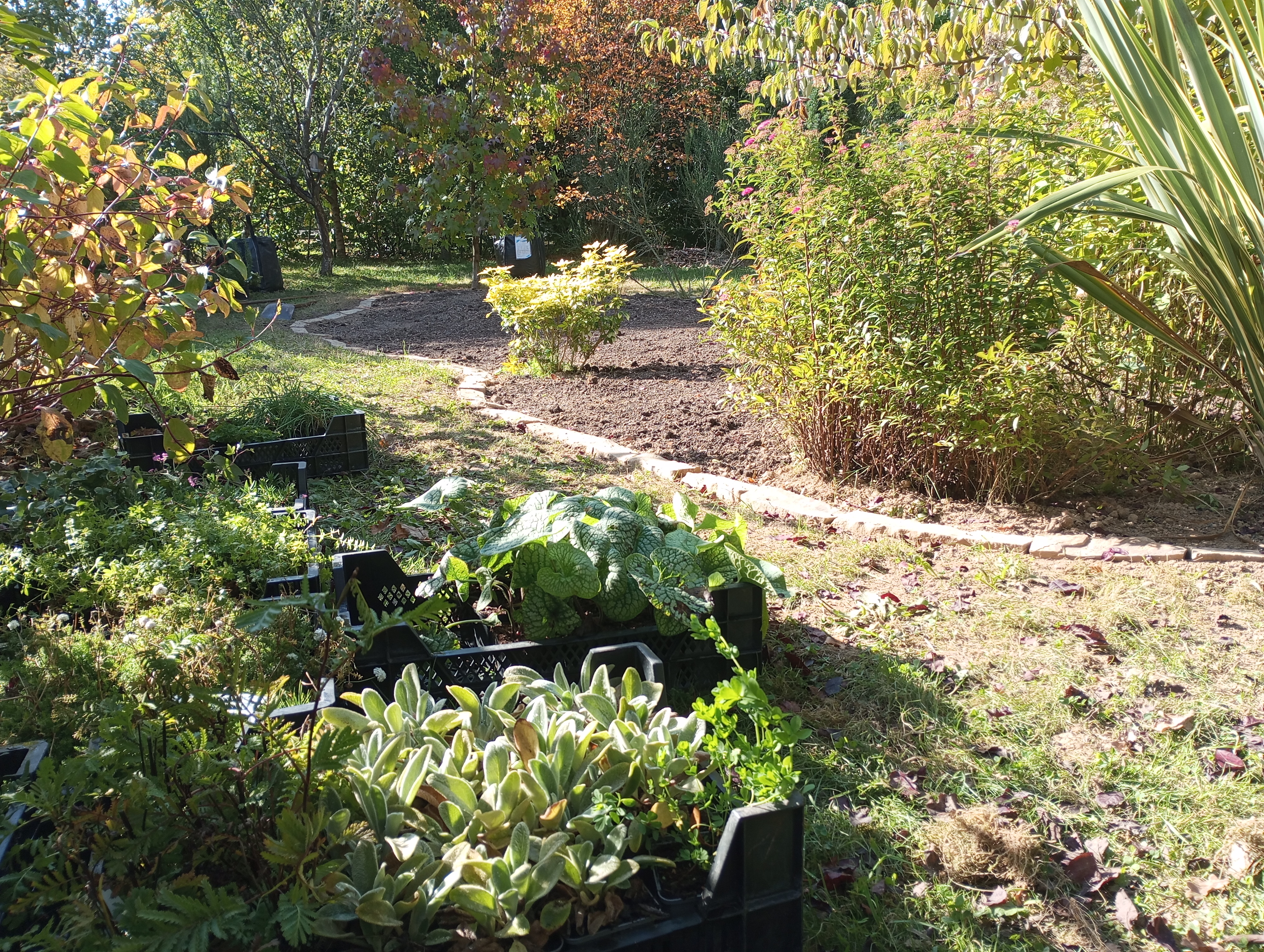 - plan à la main en trois calques : tracés, strate arbustive et strate vivace